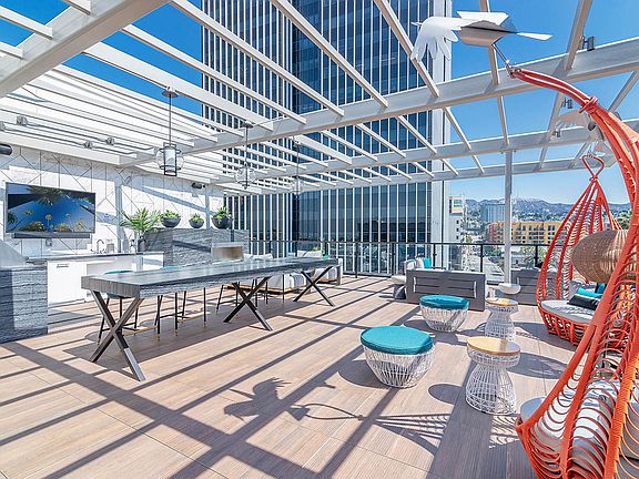 - Exterior features: , Barbecue, Bicycle storage, Bike maintenance station, Conference Room, Corner apartment, Courtyard, Designer paint and lighting, Double-pane windows, EV charging stations, Gardens and walking paths, High ceilings, Keyless entry, LEED certified, Mandatory Fee: Systematic Code Enforcement Program Fee $2.83/month, Mandatory Fee: Utilities cost based on usage plus Monthly Utility Service Fee (ConService) $4.25/month, Modern bathroom, Modern cabinetry, Night Patrol, On-Site Maintenance, On-site retail, Online Rent Payment, Parking, Pet Park, Pet Washing Station, Pet friendly, Poolside cabanas, Quartz countertops, Rooftop Deck, Smart thermostats, Stainless steel appliances, TV Lounge, Top floor, View Type: Downtown LA view, View Type: Earl Caroll Theatre view, View Type: Hollywood Hills view, View Type: Palladium view, View Type: Partial Beverly Hills view, View Type: Partial Hollywood Hills view, Wood-style flooring throughout home