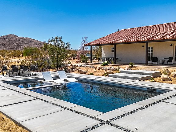 Totally remodeled home plus guest house with brand new pool on 40 fully fenced acres! Property is just a few minutes to town and the Joshua Tree National Park. Breathtaking views from every part of the property. Have horses...property features barns and a full sized polo field. Before touring each of the homes, take your time exploring the amazing recreation opportunities available on the land that surrounds them. ALL 40 ACRES ARE FENCED unprecedented in the area. As you wander, you'll be amazed to discover your own private 9 hole desert golf course, an Olympic regulation 70-meter archery range with a bench and shade structure, horse facilities, two RV hookup locations, and a regulation polo ring! As you approach the MAIN HOUSE, take a moment to appreciate the epic desert and mountain views from the inviting shaded front porch. Entering, you'll find yourself in a spacious living room that enjoys beautiful window views and plenty of natural light. Tenant pays all utilities.