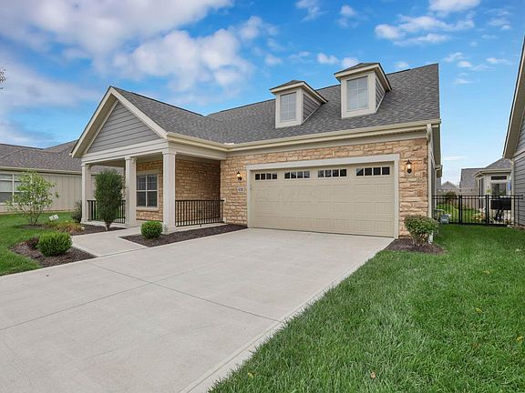 Luxury One-Story Living in Highly Desirable Riverside Epcon Community Welcome to this absolutely stunning, like new Epcon home nestled in one of the most prestigious and peaceful communities along Riverside. Offering true single-story luxury living, this immaculate two-bedroom, two-bath residence features a bright open floor plan with elegant finishes and modern sophistication throughout. Step inside to find a chef's dream kitchen complete with upgraded stainless-steel appliances, gorgeous quartz countertops, ample cabinetry, and a large island perfect for entertaining. The expansive great room boasts a cozy fireplace and abundant natural light, flowing seamlessly into a dedicated home office/den—ideal for today's work-from-home lifestyle. The primary suite is a true retreat, featuring a spacious sitting area extension, a huge walk-in closet, and a zero-curb, walk-in shower with upscale finishes. Every detail of this home has been thoughtfully designed for comfort, accessibility, and elegance. Outside, enjoy your morning coffee on the inviting front porch or unwind on the rear paver patio overlooking a private, low-maintenance yard with artificial turf and a gas hookup for your grill. Additional features include: EV charger in the large two-car garage with built-in storage racks. Blinds throughout. Washer and dryer included. Handicap accessible with no steps. Grass mowing covered by HOA. Corner lot with exceptional privacy. Located just minutes from Bridge Park's dining, shopping, and entertainment, this home perfectly blends convenience, comfort, and class.