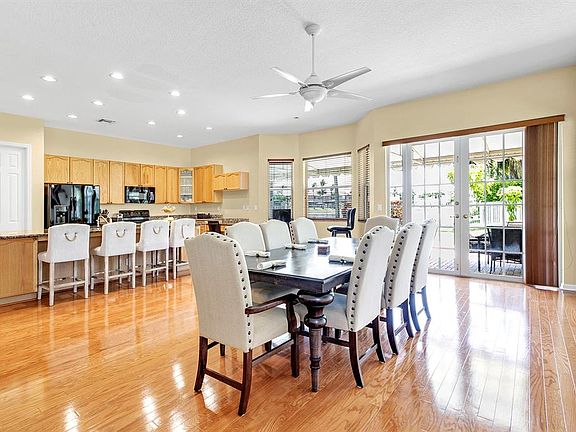 Remarkable opportunity to lease 4 bedrooms, 2.1 bath, 3-car garage pool home with serene lake views in this vibrant man-gated community of Journeys End! Grand entrance welcomes you with formal living and dining area, volume ceiling, and hardwood flooring throughout the main level. Open Concept Gourmet Kitchen boasts an oversized granite island & countertops complimented by Eat-in breakfast area that flows into family room for easy living and entertaining. French doors access patio overlooking pool and tranquil lake. The second level you will find a large primary suite with SW exposure. Primary bath has double vanity, shower, separate soaking tub, and walk-in closet. Three additional bedrooms share 2nd Bath with skylight, Double Vanity and Shower/Tub. Exterior features fully fenced private patio ideal for outdoor gatherings and BBQ's. 33 x 17 pool and spa overlooking serene lake. Laundry room, Accordion Shutters upper level, A/C' 2021. Includes Cable & Internet, Lawn & Pool maintenance. Pets & Furniture negotiable.