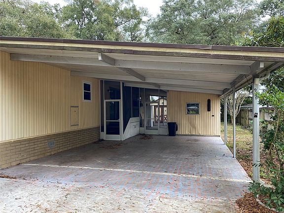 Fabulous location! This is a 3bedroom, 2bath, 1344 SQ Ft mobile home in Bahia Oaks Unit 1 that has a attractive interior upgraded 2 years ago as well as a prime location that is close to HWY 200 and all shopping/restaurants. BAHIA OAKS has NO LOT RENT nor HOA . You own your land and home. Good size private backyard fenced on three sides, with a two unattached sheds that convey.On the side of the home there is an enclosed 10' x 18' enclosed lanai. Plenty of storage in this home with built in cabinets, dressers and shelving. Vinyl plank flooring in living areas with carpet in bedrooms. Kitchen has a refrigerator, dishwasher, microwave and gas stovetop; but no oven. The original HVAC was disconnected and replaced by window AC/heat units. Sellers are investors, had tenants and have never had a professional inspection so the age of the roof is not known. New 50 gal. water heater in 2021. Eight windows replaced in 2011 and one of the sheds in 2015. Gas source for cooktop is propane. Screened patio on right side of house. Laundry is enclosed in outer room to home which has laundry sink and workbench. There is a lot to offer in this home. It is also only 10min away from the World Equestrian Center. Electric utility is SECO. Selling AS-IS, cash terms.