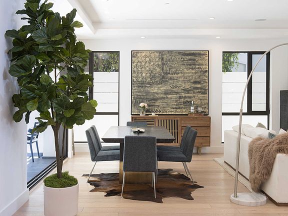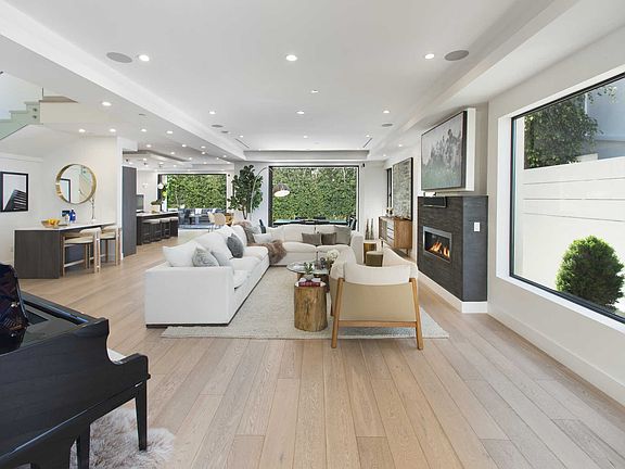 Situated in prime Beverly Grove on the highly desirable Drexel Avenue, this four-bedroom, four-and-a-half-bathroom, newly constructed modern home has been thoughtfully elevated to a higher level of luxury. Complete with new smart home technology and a Leicht, German-designed kitchen with Miele appliances, the thoroughly modern and voluminous interior seamlessly flows through a pair of hideaway glass walls to a saltwater pool and spa and grassy yard for the quintessential indoor-outdoor California lifestyle. The volume of space continues upstairs to the bedroom suites, including the oversized master suite complete with a private balcony, large walk-in closet and soaking tub. European, glass pocket doors, custom-built closets and skylights fill the residence with natural light. The star feature - not to be overlooked - is an approximately 500-square-foot rooftop deck with views of the city and Hollywood Sign. Just blocks to the city's most influential fashion and culinary destinations.