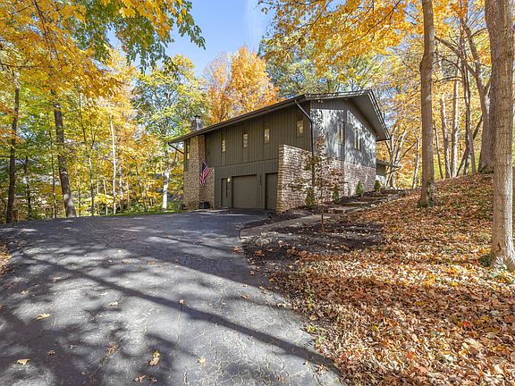 Mid- Century modern updated for today's needs. This home is dramatic and open when you come into the 2 story entry and look into the living room with soaring ceilings and windows looking into the wooded lot and flow into the dining room. New Kitchen with SS Appliances, quartz counters, with hardwoods through the main floor. Master bath & hall bath, large 1/2 bath next to family room for convenience all updated. Stone fireplace & bar in family room is perfect for entertaining. 4 bedrooms with great closets. Multilevel deck off the kitchen and the family room creates a great lifestyle. The walk-out basement is great for storage or expandable space.