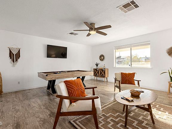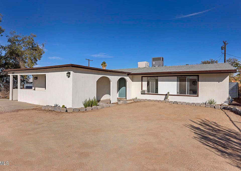 Surrounded by the peaceful desert skyline and minutes away from Joshua Tree National Park, 6243 Lupine Ave is the perfect desert home base. This updated property features three generous bedrooms and one bath, an Ecobee smart thermostat, and a cozy kitchen with stainless steel appliances and a newer stacked washer and dryer. The garage has been converted to a den, giving you that open layout with plenty of space to kick back and relax. The serene hardscaping surrounding the property features a dining patio, a fully fenced in backyard, and a firepit for evenings al fresco.
