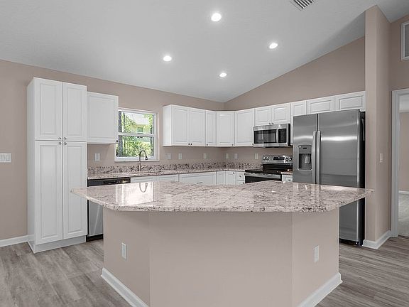 Sleek granite countertopsGourmet kitchenVaulted ceilingsWooden cabinetryQuiet citrus springs neighborhood