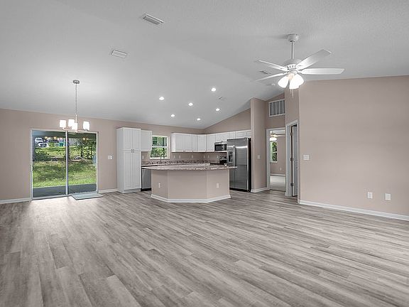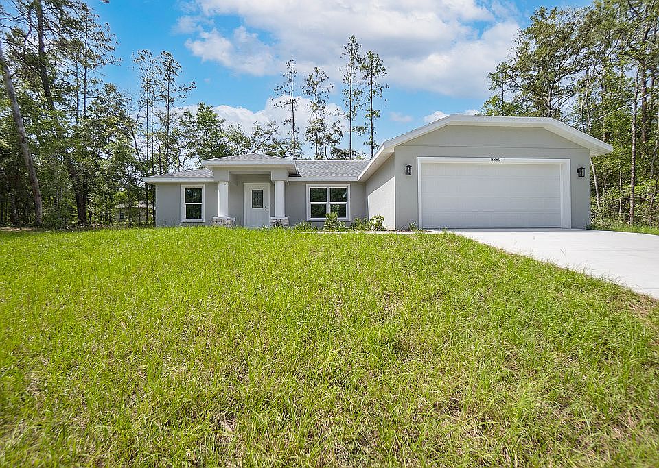 Welcome to your dream home in the heart of Citrus Springs! This brand-new construction offers 3 spacious bedrooms, 2 full bathrooms, and 1,587 sq. ft. of comfortable living space designed for modern living. Step inside and be greeted by vaulted ceilings that create an open, airy atmosphere throughout the main living area. The gourmet kitchen features sleek granite countertops, wooden cabinetry, and a functional layout perfect for cooking and entertaining. Relax in the master suite, complete with a private bath and generous closet space. Two additional bedrooms provide plenty of room for family, guests, or a home office. Enjoy Florida living at its best. This home sits in a quiet Citrus Springs neighborhood, just minutes from shopping, dining, parks, and schools. With no HOA and proximity to amenities, you’ll have both convenience and freedom.