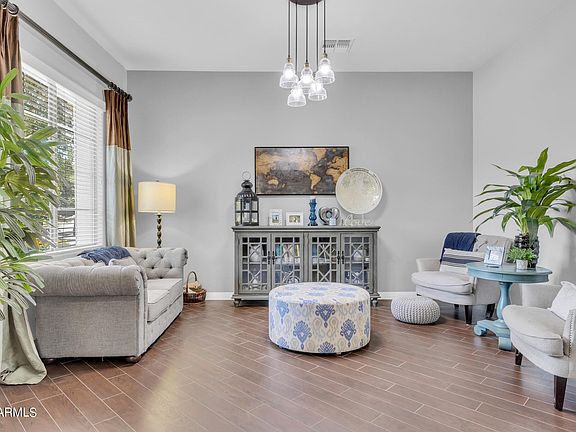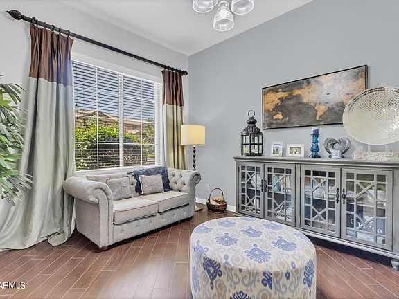 Tahitian style heated pool with large water feature, slide, cave, and shaded swim up bar! And while the pool will keep you cool outside, two a/c units - one only a year old, will keep you cool inside. The downstairs primary bedroom is a sanctuary, with plenty of space for a relaxing respite from the world and a beautifully updated ensuite bath. A large laundry room with cabinets, sink and counter top fit for a multimillion dollar home is conveniently located upstairs. And speaking of upstairs - SO MUCH SPACE! In addition to three wonderfully sized bedrooms on the second floor, each with it's own walk-in closet, there is a large loft, a huge work-out or recreation room, and a theater style room with surround sound you can use for movie nights, an office, a play space, whatever your imagination can conjure. You will never run out of storage space between the three car tandem garage and the multitude of closets and tucked away spaces within the home. All of this in a neighborhood that can't be beat! In the heart of Gilbert, you're close to wonderful amenities including the Gilbert Regional Park, San Tan Village shopping and entertaining and nearby golf courses.