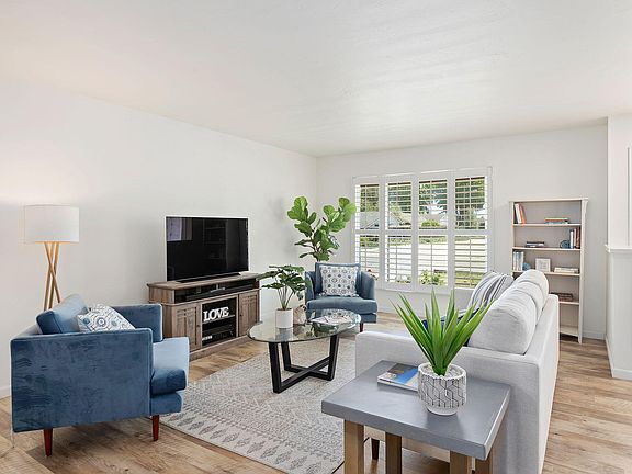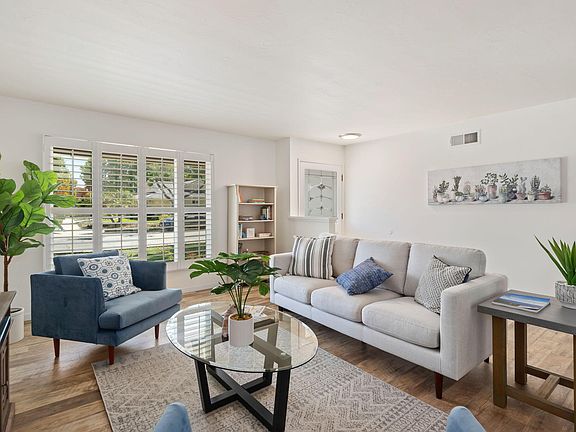 Unmissable opportunity! Delightful spacious 3 bed 2 bath home with dual living, in-law quarters or income from generous private 2 bedroom 1 bath addition creating a uniquely affordable opportunity in a fantastic neighborhood. Walk to schools making morning routines a breeze, stroll to shopping center and restaurants, enjoy the private yard with fruit trees, owned solar panels, A/C, new flooring and upgrades leaving little to be desired! This home also features a generous separate family room with two desk nooks ideal for office or homework. Walk to local dog park and tennis courts, abundant sidewalks run throughout a neighborhood that boasts a legacy of terrific Halloween traditions!