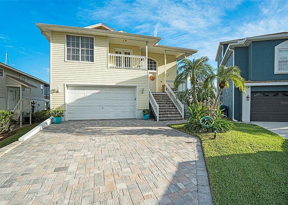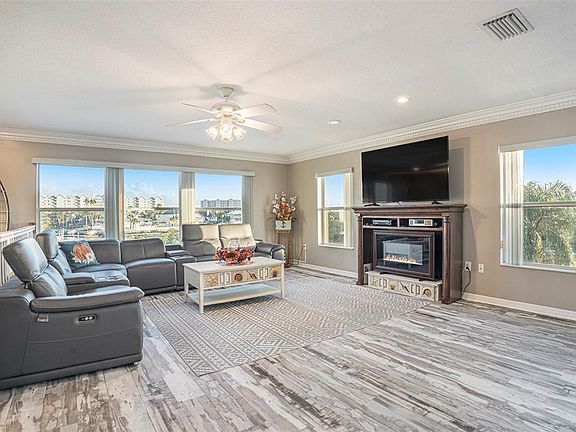 Welcome to waterfront living in the sought-after Gulf Harbors Community! This stunning home offers breathtaking water views from nearly every room and features an open floor plan filled with natural light. The spacious, open-concept kitchen is designed for entertaining — showcasing granite countertops, stainless-steel appliances, upgraded cabinetry, and a breakfast bar large enough for the whole family. Enjoy casual meals in the eat-in area or host dinners in the formal dining space with a bay window overlooking the water. Upgraded flooring flows throughout both levels, enhancing the home’s modern feel. The primary suite is a private retreat with unforgettable water views, a walk-in closet, and a luxurious ensuite bathroom. Step outside to your backyard oasis, complete with a beautiful pool area, two pergolas, a shaded sitting area with awning, dog run, 52 feet of seawall, and a floating dock — perfect for paddleboards, kayaks, or launching your boat for a quick trip to the Gulf of Mexico in minutes. The side-fenced yard offers extra space for pets or family gatherings. Residents enjoy access to Gulf Landings Clubhouse, community pool, tennis courts, and the option to join the exclusive Gulf Harbors Beach Club for just $200 per year — a private beach reserved for local residents. Located in a quiet, well-kept community close to shopping, dining, and entertainment, this home perfectly blends coastal living and everyday comfort.