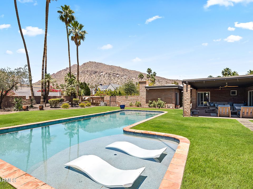 Sitting on nearly an acre in the heart of Scottsdale's coveted Arcadia enclave, this Two Hawks fully renovated 5-bedroom, 4.5-bathroom residence offers both charm and versatility—ideal as a family retreat or a unique short-term rental opportunity. The backyard showcases iconic Camelback Mountain views and is designed for entertaining with a sparkling heated pool, sport court, built-in BBQ, covered patio, and a large grassy play area.
