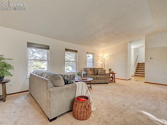 Welcome to this four-level gem in a quiet neighborhood in northeast Colorado Springs! From the large foyer with hardwood floors, enter a large living room/dining room combination that is open and flooded with natural light. Large windows and vaulted ceiling give the home an airy feeling, and the kitchen has its own skylight. The main level has casual and more formal dining spaces, and walks out to a large wooden deck that could easily become your favorite dinner spot on warm fall nights. A half flight up from the foyer is the large master suite with walk-in closet and attached bath. There are two other secondary bedrooms and another bathroom with tub/shower combo. Down a half flight from the main level is a family room with wood-burning fireplace and brick hearth, walkout to patio on backyard level, and a bedroom (could be an office) and full bathroom. Laundry is also on this level on the way to garage. Unfinished basement has tons of potential and a laundry sink. NEW roof in January, NEW paint throughout interior, NEW carpet, some light fixtures are freshly updated and decks have just been re-stained. Come check out all the living space this home has to offer!