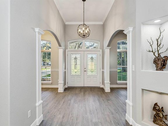 Beautiful brand-new home just completed in November 2022. All brick with stone design in the front, modern construction home sits on a .35 acre with no HOA! The living room has beautiful craftmanship with ceiling heights ranging from 10ft to 14ft. Double tray ceilings in dinning, office and master bedroom and coffered ceiling in the living room. Master bathroom has custom tile shower and separate tub! Standard bathroom also has beautiful tile shower. Kitchen features stainless steel appliances, large granite island that opens to the living room, stove and microwave, separate pantry cabinet for more storage, custom tile backsplash and bar's wall. Located in the living room is the lovely modern electric Fireplace. Mature oak trees give the house a cool feeling during summer time.