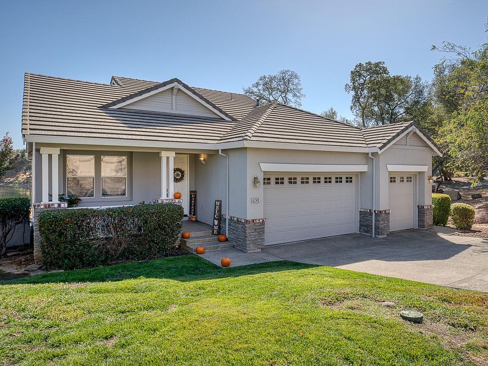 SINGLE LEVEL HOME HAS 4 BD 2 BA AND PANORAMIC VIEWS OF LAKE CHESBRO Updated 2,094 sf one story has 4 Bedrooms 2 Baths and 3 car garage. Dramatic cathedral ceilings, clerestory windows plus NEW: extensive luxury vinyl wood style flooring, interior paint and carpet. Double French Doors lead to Family Room with gas fireplace and center island Kitchen. Slider door opens to large Trex Deck with vista view. $2,950 per month. Tenant pays SMUD (electricity), RMCSD (Water, sewer, garbage and security), Cable TV and Internet. NO SMOKING ALLOWED