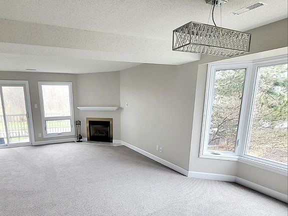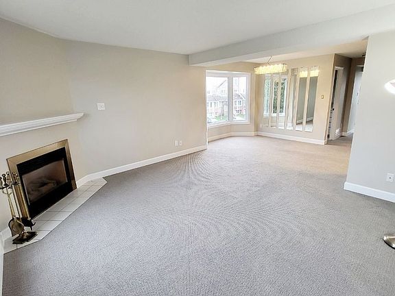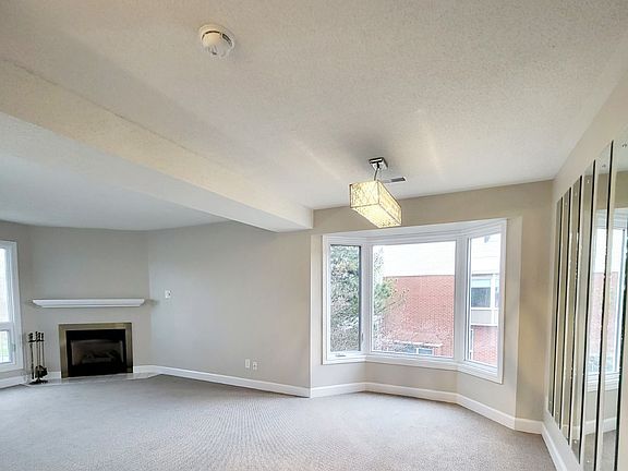 Spacious corner unit spanning two levels, with a picturesque park view. The main floor offers an expansive open-concept dining area with a bay window, a living room featuring a cozy gas fireplace and a generous balcony, a large eat-in kitchen, and a powder room with ample storage. Upstairs, find a remarkably large primary bedroom with wall-to-wall closets and an additional balcony, alongside a bright second bedroom with another sizable closet. Also on this level, a full bathroom and convenient second-floor laundry. Recently painted in neutral tones, the unit boasts newer plush carpeting throughout, glass top stove, dishwasher, high-efficiency furnace, and central A/C. Rent includes one parking spot right at the door, plus ample in-unit storage. Conveniently located near parks, schools, library, shopping, dining, entertainment, public transit, and highway access. Situated in a quiet, safe, and family-friendly neighborhood. Available for occupancy on December 1st.