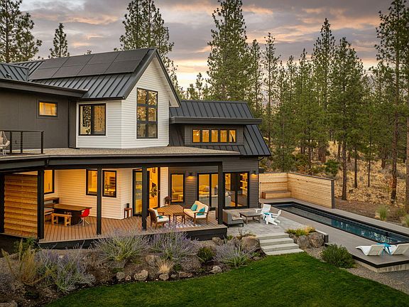 Nestled in Westgate on 2.5 acres, this custom-built farmhouse blends New England architecture with casual West Coast style. Designed to capture light year-round, it offers daily sunrises while keeping the yard as an oasis from summer heat and winter wind. Inside, find 3 bedrooms plus a versatile office/guest suite, mudroom, pantry, work nook, reading bench, and more. At its heart, a well-appointed kitchen opens to the great room and outdoor living with seamless flow. In the backyard playground, enjoy a four season 40-foot pool, hot tub, outdoor shower, powder room, natural bouldering wall, and scenic perch. For adventurers, the 4+ car garage and van port provide ample storage. Green features include an 8.8KW solar array, Havelock Wool insulation, heat pump, and induction cooktop. With easy access to Shevlin Park, Phil's Trail, and top schools, this west Bend estate is ideal for living, working, and playing.