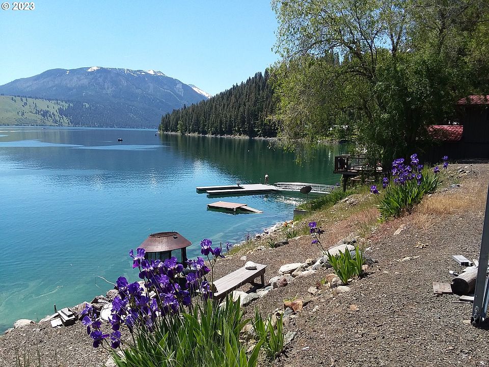 Wallowa Lake frontage. This improved lot is connected to The sewer system for the west side of Wallowa Lake. The well is from a spring on the property. A cover for your RV and a dock is included with the sale. Electricity is there with a full hook up for an RV. The lot is buildable.