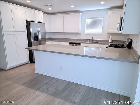 Welcome to your new home in the heart of desirable Northwest Las Vegas! This beautifully designed townhome offers an open, airy floor plan that makes everyday living feel spacious and comfortable. The kitchen is a true standout with granite countertops, breakfast counter, crisp white cabinetry and sleek stainless appliances perfect for cooking and entertaining. Upstairs, the layout is smart, with bedrooms thoughtfully spaced apart, including a relaxing primary suite with dual sinks and a modern, stylish shower. With upscale finishes throughout and a location that puts you close to everything, this home is the perfect blend of comfort and convenience. Sorry, no pets allowed. (Base Rent $1,950 + $37 RBP)