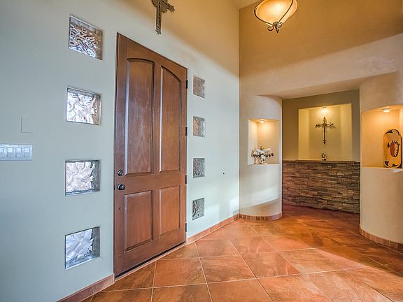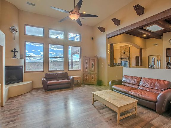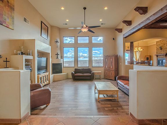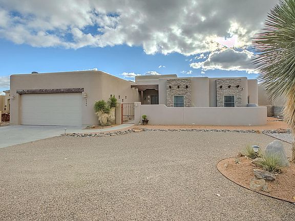 Stellar Quality & Craftsmanship in This Gorgeous Custom Home Located on a 1/2 Acre Lot w/Stunning Mtn Views! Many Fine Amenities Including Raised Ceilings,Great Room, Formal Dining Room, Gas Log Fireplaces, Tile & Carpet Flooring, Designer Touches Throughout, Skylights, Cool Refrigerated Air,Laundry Room w/Sink, Office,And Much More! Chef's Delight Kitchen w/Custom Cabinets, Viga Ceiling, Breakfast Bar, Concrete Counters, Tile Backsplash,Stainless Steel Appliances,Gas Range Stove, and Pantry. Fabulous Master Suite Boasts Full Bath w/ Jetted Tub, Separate Shower, His & Hers Vanities & Huge Closet. The Large Lot Offers Numerous Possibilities, Beautiful Courtyard, Xeriscaped Landscaping in Front & Two Covered Patios In Back Add To The Magnificence of This Spectacular Home. Come See It Toda