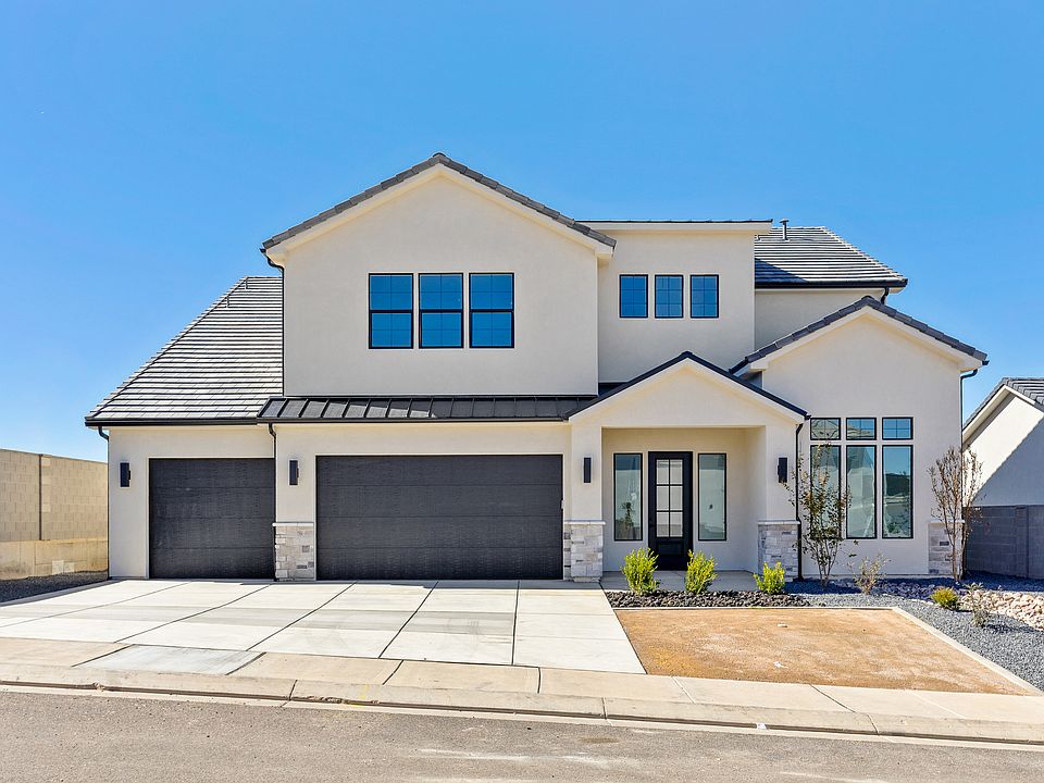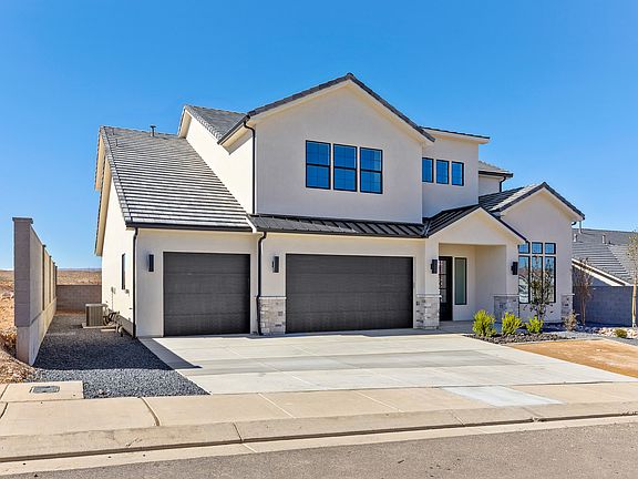 Almost finished! 6 bedrooms + an office/den, mud bench just inside from the 3-car garage, huge media room/loft, privacy block walls on 3 sides, huge covered patio to enjoy evening shade, 10ft ceilings on the main level with 8ft tall doors, tankless water heater, rain gutters, custom cabinets, quartz countertops, tiled showers, primary bedroom on the main level with a beautiful bathroom suite with a walk-in-closet, double vanities, soaker tub, and gorgeous shower, stainless steel appliances including the refrigerator, nice pantry, builder warranty, Dixie Power District. All information is deemed reliable but not guaranteed, buyer to verify all.