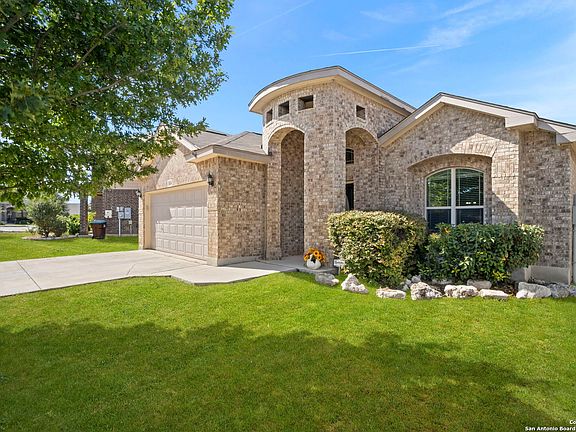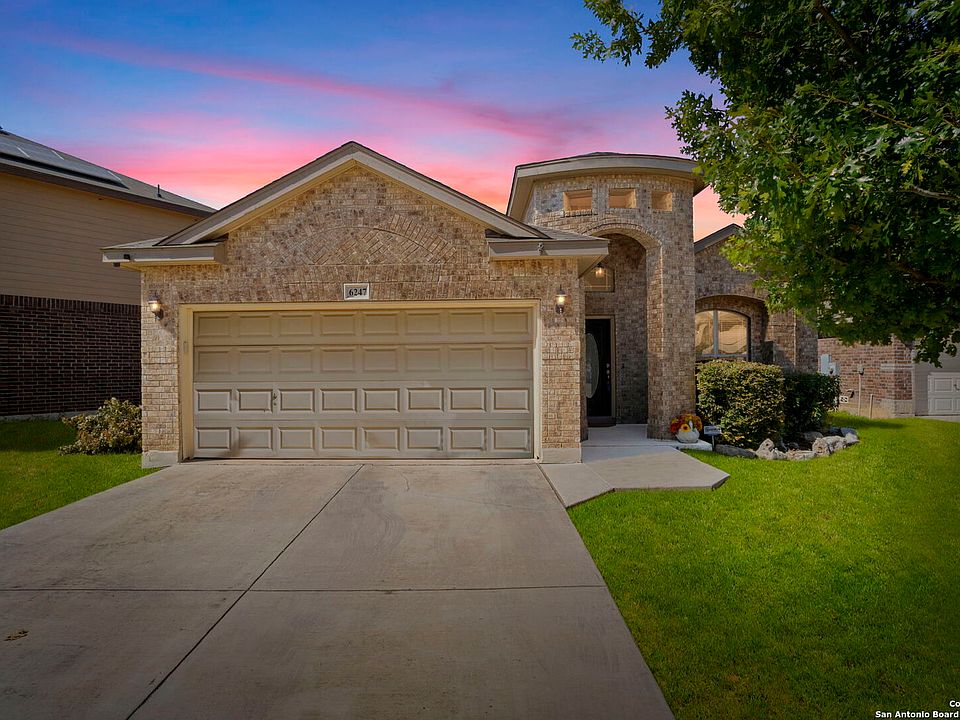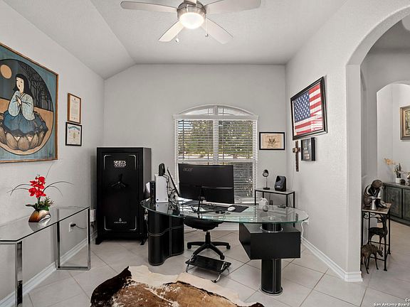 Beautiful and rare opportunity! This New Leaf home stands out as one of the last of its kind in the community. Featuring stunning curb appeal with grand arches, a show-stopping foyer, and tall tray ceilings throughout, this open-concept layout offers versatility with a flex room perfect for an office or dining space. The kitchen impresses with ample storage, granite counters, and a designer ceiling that ties the home's architectural details together. Enjoy spacious bedrooms, no carpet in the home, a primary suite with garden tub and walk-in shower, and a covered patio overlooking a low-maintenance backyard with greenbelt views. Conveniently located near major highways, schools, shopping, and dining-this home combines charm, design, and location. Schedule your private tour today