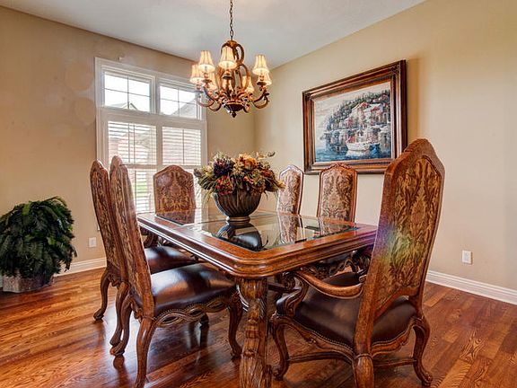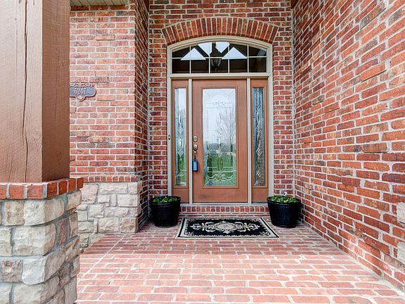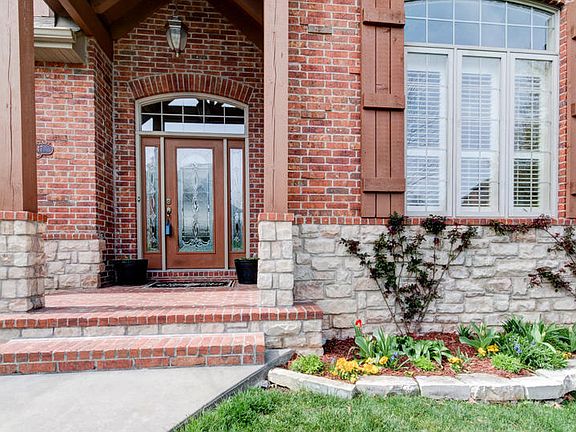 Photos are prior to renovations and do not represent current owners furnishings, This is a beautiful Brick walkout basement home with stone accents and beautiful Golf Course view overlooking the 14th tee box. A wonderful open kitchen and family room w/granite countertops, island and gorgeous custom maple cabinets, two fireplaces. Three bedrooms are on the main level (3rd can be an office) 2nd bedroom has its own bath. Ash hardwood floors in entry, hallways, kitchen and upstairs family room room. The basement is spacious with tall ceilings, nice wet bar w/ Shirestone countertops, room for pool table,living area and possible media room set up for sound system. Generator, new garage doors & front door, hot water recirculating pump, tinted windows in back of home, central vac, California closet system, Sunsetter Awning on the back deck, fenced dog run, lots of storage, storm shelter, community pool and more!