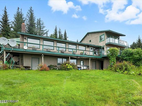 IMAGINE waking up to sweeping views that follow you from every deck, kitchen, & living room. Sunlight fills the home, bringing the outdoors in. Spend afternoons in the greenhouse, evenings unwinding in the sauna, & nights beneath the stars in a hot tub built for 12! With cozy cabins tucked into the trees & acres of Alaskan beauty all around, this property is a rare retreat unlike anything else!For the very first time, this remarkable estate is being offered to the market! Steeped in rich history and long cherished in the Homer area, this is your exclusive opportunity to own a truly special piece of Alaska. Discover an expansive tri-level home perfectly situated on 19.11 acres of breathtaking land. A rare find combining space, privacy, and endless potential. The previous owner had planted over 100 different varieties of native and domestic flowers and plants. Including a huge peony farm called Kachemak Seascape Peony Farm. The land surrounding is mostly protected and owned by Alaska Coastal Studies, creating a beauty and peace that words can't capture. This must be experienced in person to truly appreciate its breathtaking beauty! The main estate features: - 3 kitchens and 3 Light-filled living rooms, one on each level and each with their own exterior entrance. All featuring panoramic bay and mountain views from each living area - Perfect for multi-generational living or Bed and Breakfast use - Cozy fireplace and wood stove for warmth, plus sauna for relaxation - Sunroom with walls of windows bringing the outdoors in - Hot tub built for 12 with unmatched stargazing and views - One greenhouse connected to main house - Expansive decks and patios overlooking Kachemak Bay, Homer Spit, and Kenai Mountains Detached Structures and Guest Spaces: - Two dry cabins tucked into the trees- ideal as guest quarters, studio, or rental potential - Detached 3-car+ garage/shop (896 sq ft) with room for vehicles, gear, and hobbies - Barn/shop area for storage, projects, or livestock potential - The largest greenhouse you will ever need, perfect for year-round gardening - Private yard with rolling, sloping topography and wooded privacy - RV parking and plenty of space for Alaskan toys The features are endless, this estate is a true Homer Heirloom! While it may need a little polishing, its rich history, prime location, and unforgettable views promise a lifestyle like no other.