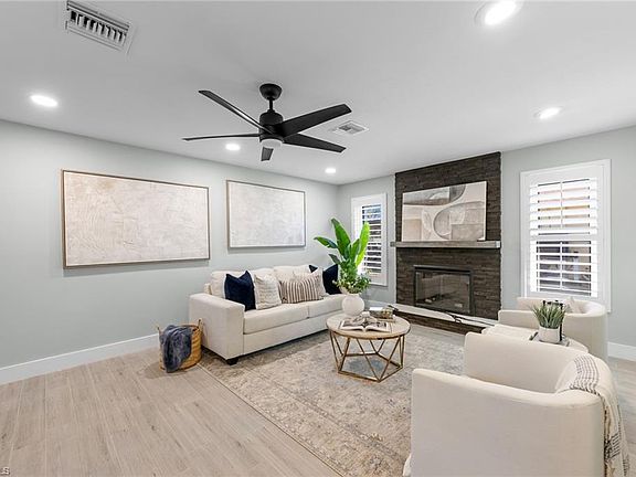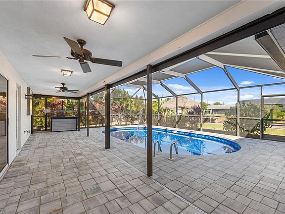 Attention Boaters—your home search ends here! This fully remodeled, move-in-ready waterfront retreat offers effortless Gulf access, no HOA, and upgrades already in place. Offering 1,700 sq ft of one-level living with 3 bedrooms and 2 baths, this home is ideal as a year-round residence, vacation getaway, or income-producing property. The interior is pristine and modern, paired with exceptional outdoor living. Set on a coveted Gulf-access canal, the property is designed for both relaxation and adventure. Enjoy a 10,000 lb covered boat lift, private boat launch, and a short, scenic ride to the Gulf—perfect for boating, fishing, and exploring Southwest Florida’s waterways. A large tiki hut, expansive deck, and super-screened pool enclosure create a standout entertainment space with tranquil water views, while newly installed electric hurricane mesh screens add effortless protection. Inside, the home features fresh neutral paint, plantation shutters, updated cabinetry, Cambria quartz countertops, a spacious island, stainless steel appliances, soft-close drawers, and plank tile flooring throughout. Impact-resistant windows and solar panels further elevate efficiency and value. Located within one of Fort Myers’ most desirable boating corridors and minutes to shopping and dining, this is waterfront living at its finest.