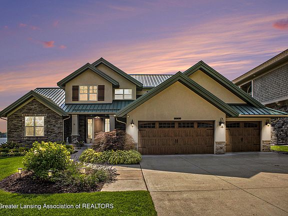Welcome to this stunning waterfront residence located on a double lot with 80 feet of frontage on Lake Lansing! This home offers the perfect blend of modern elegance and timeless craftsmanship. Built in 2017 with meticulous attention to detail, this home showcases refined living at its finest!