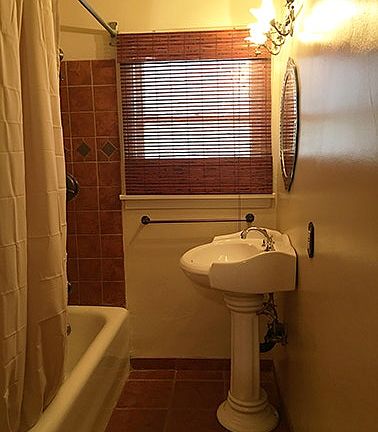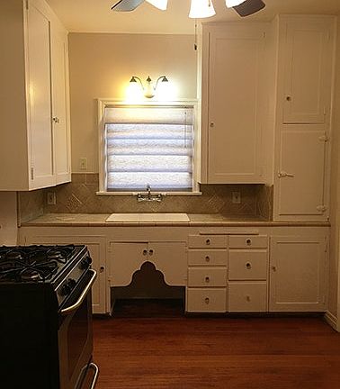 1,000 sq ft spacious 1930 vintage Spanish 1 bedroom unit, including dinning and living room. Washer and dryer hook up in the laundry room within the unit. Oven range and refrigerator in the kitchen. One car garage. 1 year lease. No pets.