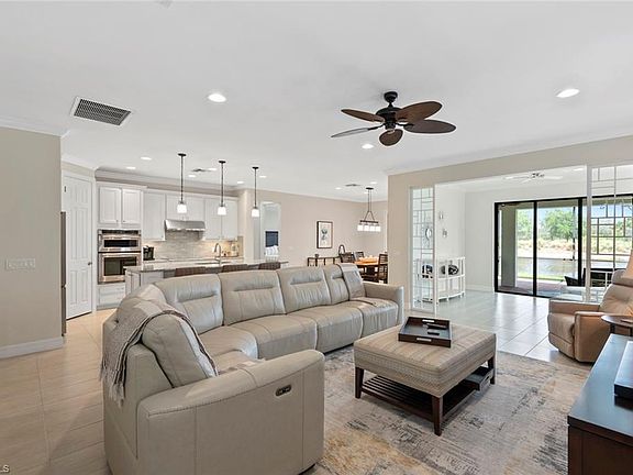PREMIUM GOLF COURSE & WATER VIEW — This beautiful home offers one of the most desirable settings in Del Webb Naples, perfectly positioned on serene water and overlooking the 17th Fairway of Panther Run Golf Course. Located in the 55+ Del Webb community, this residence showcases the popular SUMMERWOOD floor plan with 2 bedrooms, a den, a spacious Florida Room, and a long list of thoughtful upgrades. The GOURMET KITCHEN is truly a chef's delight, featuring a large entertaining island, UPGRADED APPLIANCES, soft-close cabinetry, and convenient pull-out drawers. The versatile den is ideal for guests, a home office, or hobbies. Designed for comfort and peace of mind, this home is equipped with ELECTRIC HURRICANE SCREENS on all windows and doors, offering security and an effortless indoor-outdoor transition. Additional upgrades include TILE FLOORING throughout, CROWN MOLDING, EXTRA CAN LIGHTING, and freshly painted interior and exterior spaces. Enjoy Florida living at its finest on the EXTENDED LANAI, recently upgraded with “No See-um” SCREENS in the front and back. The lanai is also pre-wired for a hot tub - perfect for enhancing your outdoor retreat. Inside, PLANTATION SHUTTERS and CUSTOM CLOSETS add elegance and functionality to every room. The luxurious PRIMARY SUITE features a large walk-in shower, CUSTOM CLOSET, and dual sinks for a spa-like feel. The TANDEM-STYLE GARAGE offers exceptional flexibility with space for a golf cart, hobby area, or extra storage. It also includes a 4’ EXTENSION, EPOXY FLOORING, and an INSULATED GARAGE DOOR for year-round comfort. This home comes with the SOCIAL MEMBERSHIP, but take note GOLF LOVERS, Panther Run Golf Club offers optional MEMBERSHIPS with premium golf experiences just steps from your backyard. In Del Webb Naples, you’ll enjoy WORLD-CLASS AMENITIES that rival luxury resorts: dine at the Rusty Putter Restaurant, soak in the RESORT-STYLE or LAP POOLS, break a sweat in the state-of-the-art FITNESS CENTER, and play your way through PICKLEBALL, TENNIS, bocce, billiards - even a top-tier GOLF SIMULATOR! Need groceries, church, or a bite to eat? Just hop in your golf cart and cruise into town - Publix and the heart of Ave Maria are just minutes away. This isn’t just a home - it’s a LIFESTYLE UPGRADE in one of Southwest Florida’s most vibrant 55+ communities. Don’t miss your chance to live where fun, fitness, and friendships flourish year-round!