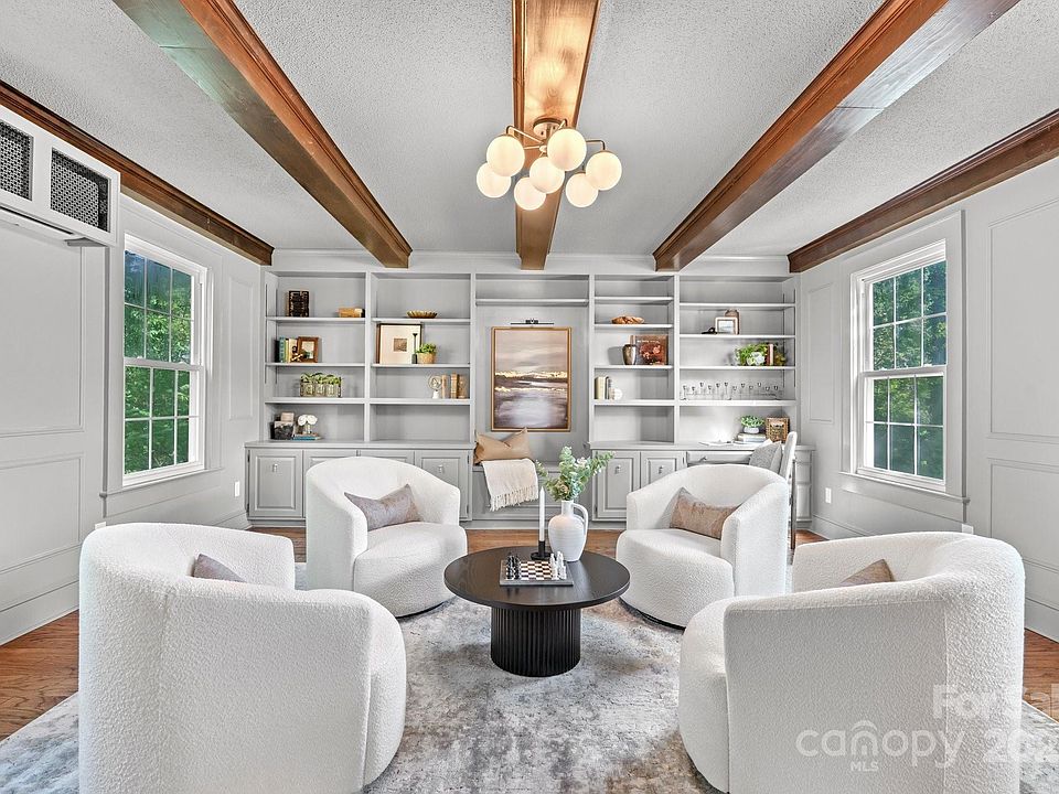 Excited to present this exquisitely remodeled 2 story home w/ basement, featuring 5 beds / 4 full baths. Conveniently located in the heart of Hickory, walking distance to Lake Hickory Country Club, Oakwood Elementary + close to Frye Hospital, LR University, parks, shops, restaurants and more. The home is set on a corner lot + includes a 2 car covered parking area + a 1 car garage + a side-covered porch. Numerous updates, including refinished hardwood flooring, new fixtures + fresh paint. The redesigned kitchen + tastefully remodeled bathrooms enhance the home’s appeal. Family room features a cozy fireplace. Brand-new kitchen boasts soft-close cabinets, quartz countertops, marble backsplash. stainless steel appliances with induction stove, a built-in seating area + spacious dining room. Primary bathroom includes a tiled shower, elegant molding + a new double vanity. If you’re looking for a beautifully remodeled historic home in the heart of it all, this is the perfect home for you