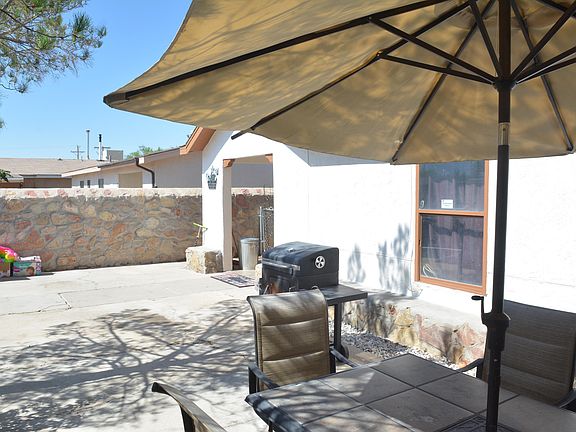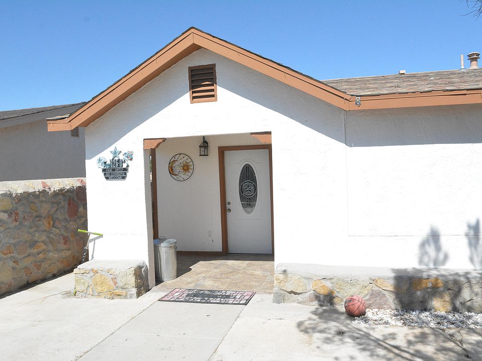 Located in Anthony, NM. This home has 3 bedrooms, 2 bathrooms (3/4 and 1/2) and a large back yard. Tile floors throughout, updated kitchen and a tall rock wall surround the entire property. Behind the 2 large gated doors is room for 2 vehicles to park. Back yard also has access for vehicles, rv or boat.