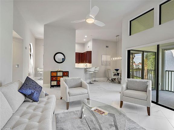 Step into this beautifully remodeled 2-bedroom, 2-bath condo in Beachwalk Gardens, a gated community just moments from Vanderbilt Beach and next to the new Ritz-Carlton condos. This bright and inviting residence features a split floor plan, vaulted ceilings, and tile flooring throughout. The spacious kitchen offers stainless steel appliances, quartz countertops, a custom backsplash, and plenty of workspace. Off the family room, a screened balcony overlooks the long lake, providing a tranquil spot to relax and unwind. Additional features include updated lighting, ceiling fans, a designated carport, and an outdoor storage space. Beachwalk Gardens offers an active social calendar and resort-style amenities, including two community pools, tennis, bocce, and a fitness room. Ideally located near Mercato, shopping, dining, and the white-sand beaches, this home blends comfort, convenience, and a vibrant coastal lifestyle.