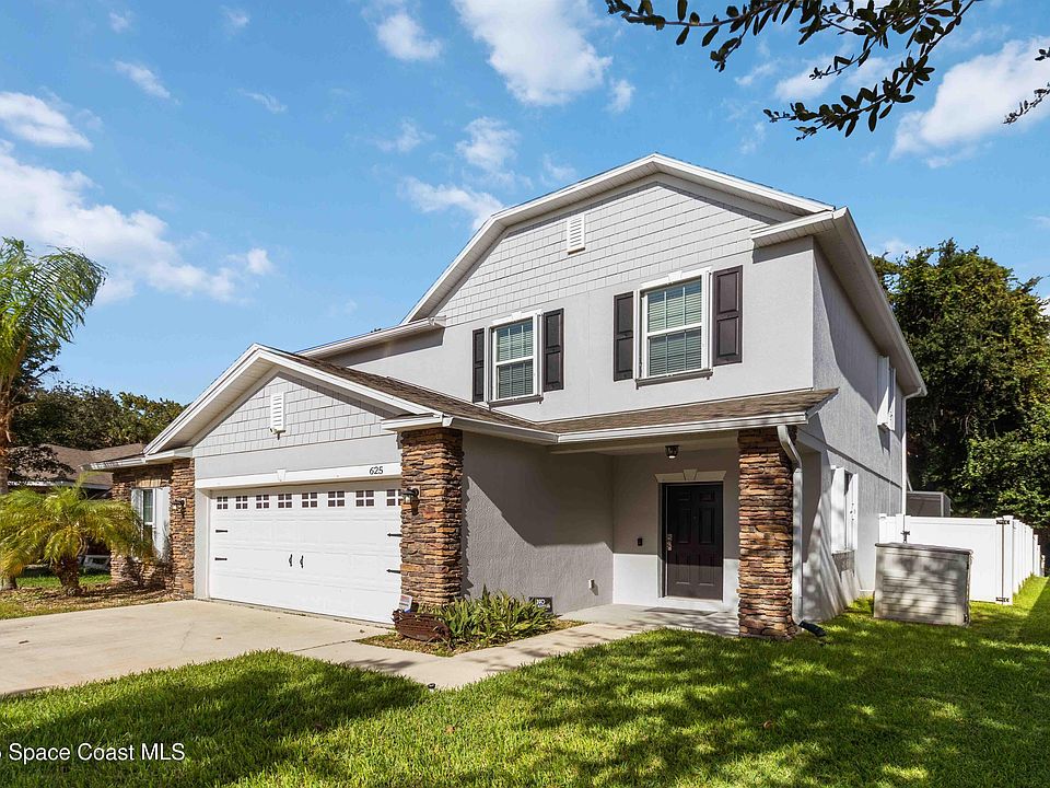 You'll feel right at home in this beautifully maintained 3-bedroom, 2.5-bath home filled with thoughtful upgrades and unique extras. The spacious open living room welcomes you in, leading to an updated kitchen featuring granite countertops, stainless steel appliances, a wine fridge, cooktop, breakfast bar, & island. A convenient half bath is located off the dining area, perfect for guests enjoying the heated swim spa installed in 2022—ideal for relaxation, hydrotherapy, or a refreshing swim. Upstairs, the primary suite offers tray ceilings, abundant natural light, a vanity area, and a walk-in closet the size of a small bedroom! The main bath includes a garden tub and a luxurious double rain shower, while the loft makes a great office or play space, with laundry nearby for convenience. Additional perks include extra storage in the 2-car garage and side room, a Ring doorbell, security system, storm shutters, and whole-house generator wiring. Close to KSC, the airport, shopping, & more!