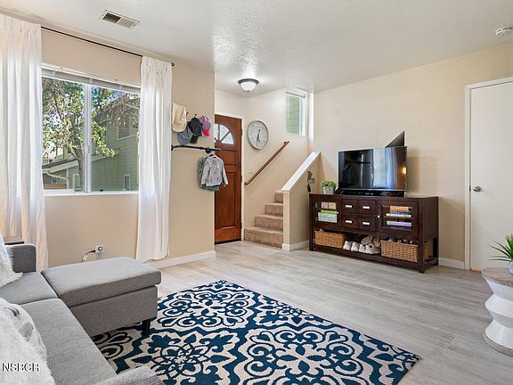 Tucked into the back of Central Plaza - a darling storybook complex of 16 Cape Cod style attached residences is this refreshed two-story home! Just beyond the private grassy courtyard, this 2 bedroom, 1.5 bathroom townhouse includes a private balcony and patio with views over the serene hillside behind filled with oaks, native plants and wildlife. A canopy of trees create an archway above the path to the front door, leading to a lovely living room with LVP flooring and understairs storage niche next to the convenient half bathroom with custom tile backsplash. Moving deeper into the home, find the dining area with a sliding door to the private back patio with room for barbeque or spa, bordering open space. Adjacent to the dining area is the updated kitchen with quartz counters, breakfast bar, farmhouse sink, new flooring and paint, gas stove, pantry and a garden window showcasing a restful hillside view. Upstairs are two bedrooms with storage...one with Juliette balcony, darling full bath with tub/shower and a convenient stackable laundry. The home includes covered carport parking with storage. This woodsy, beautifully maintained community lies in the friendly town of Buellton, blocks from the public elementary and secondary school, great local parks, PAWS dog park, and great shopping, dining, wine tasting and microbreweries and outdoor activity options. In the heart of the Santa Ynez Valley within a six-mile radius of four adjacent storybook villages: the Danish city of Solvang, the western town of Santa Ynez, and the Rockwellian rural communities of Ballard and Los Olivos, Buellton enjoys an inviting Mediterranean coastal climate with warm summer days, cool marine-layer influenced evenings, and mild winters. This lovely home beckons a new owner and is and affordable option to own your own home in the gorgeous, unparalleled Santa Ynez Valley. Welcome Home!