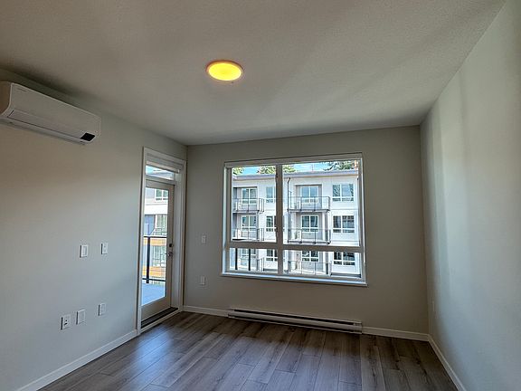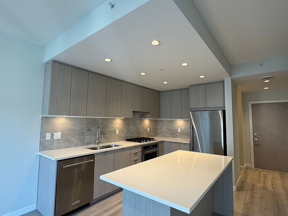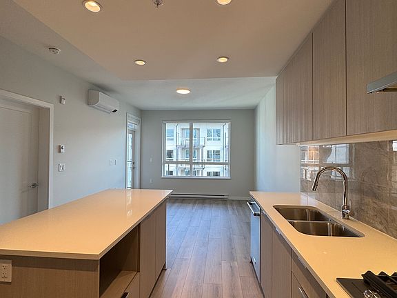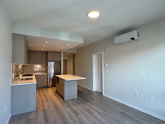 Welcome to Skylark by Polygon, a brand-new development in the heart of Burquitlam! This spacious 1 bedroom + den, 1 bathroom apartment offers modern living with a bright open-concept layout, a high-end kitchen featuring quartz countertops, stainless steel appliances, and a large island that flows seamlessly into the living area. The home is located on the top floor, includes air conditioning, a private patio, and parking. The versatile den is perfect for a home office or extra storage. Enjoy convenient access to the Burquitlam SkyTrain Station, shopping at Lougheed Town Centre, and dining in nearby Korea Town. Building amenities include an air-conditioned fitness studio, outdoor stretching area, multi-purpose room, and an impressive 5,000 sq. ft. outdoor courtyard with a harvest table, fire pit, hillside slide, and curated green space ideal for entertaining and relaxation.