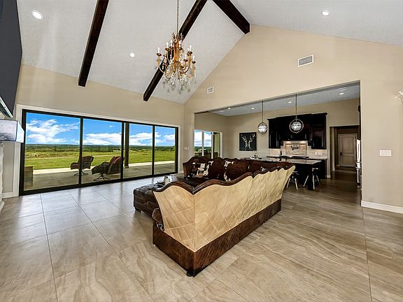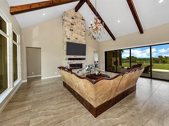 Inside, vaulted ceilings with exposed beams and oversized panoramic windows in almost every room fill the home with natural light and perfectly frame the Texas landscape.