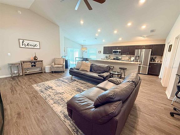 Beautiful Auburndale/Polk City Home featuring 4 bedrooms, 2 bathrooms, and 1,819 square feet of living space. The open concept floor plan offers a spacious kitchen with stainless steel appliances, a center island, walk-in pantry, and modern cabinetry. The owner’s suite includes a large walk-in closet and a private bathroom with dual vanities and a walk-in shower. Luxury vinyl plank flooring enhances the main living areas, while energy-efficient construction and contemporary finishes provide comfort and style throughout. The home also includes a covered lanai, a two-car garage, and a whole-house water filtration system with water softener for added convenience. Located in a quiet community with a low HOA, this home combines modern design, functionality, and value. READY for its next owner to enjoy.