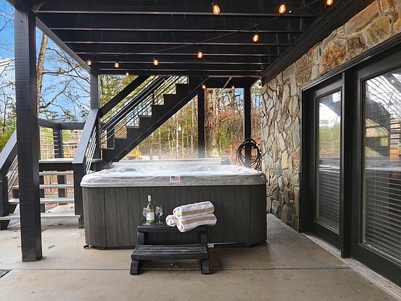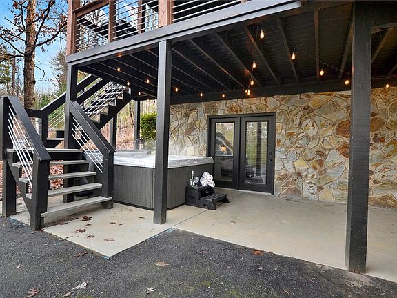 Charming and newly renovated, this turnkey cabin is being sold fully furnished and offers 4 bedrooms, 3 bathrooms, plus a spacious game room for endless entertainment. Blending modern upgrades with rustic charm, the open-concept living area features a cozy stone fireplace, stainless steel appliances, ample dining space, and comfortable seating throughout. Step outside to enjoy the expansive porch for morning coffee or evening cocktails, relax in the hot tub, or gather around the fire pit under the stars. The game room boasts a full-size pool table, making it the perfect retreat for family and friends. Tucked away in a peaceful and private setting yet only 5 miles from Downtown Blue Ridge, this cabin is ideal as a full-time residence, mountain getaway, or income-producing investment property. A true mountain gem—move-in ready and waiting for you!