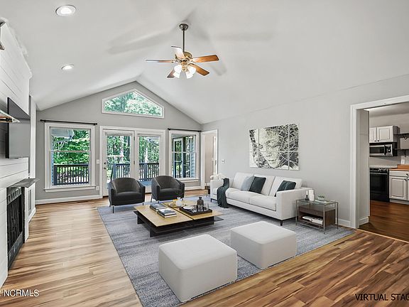 If you are looking for a quiet neighborhood with close proximity to Ft. Bragg, Southern Pines and Pinehurst, this could be the perfect place for you. This adorable 3 bedroom 2 bath home sits within the gated Woodlake community. Single story home with a 2 car garage. Vaulted ceiling in the living room and primary suite. LOTS of natural light in this home. A great screened in porch off the kitchen/dining area, large deck off the living room and primary bedroom. This home has numerous cosmetic updates including all carpet removed and replaced with LVP flooring, built in bar cabinet and shelving in the living room added, shiplap on the fireplace and accent wall in the 2nd guest bedroom, open shelving in the kitchen, newer refrigerator and range as well as light fixtures and more. The lake is currently dry, but there are plans underway to repair the dam and open one of the golf courses. There is also a swimming pool, playground, restaurant, and 24 hr security in Woodlake. Furniture in some photos are virtual staging for spatial reference. Amenities such as swimming pool and golf are not covered by HOA, those are subject to additional fees.