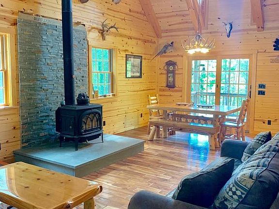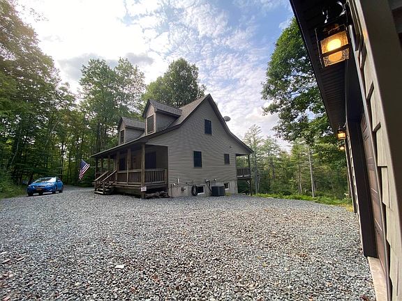 Pull into the gated driveway off the private road to find this newly built home. On the main floor in the living room, the wood stove sits on bluestone hearth with a multi colored blue stone back drop. The dining room has a sliding glass door that goes out onto a covered 12x32 deck with built in ceiling fans and lights to enjoy during all types of weather. The kitchen is a true work of art having stainless steel appliances, hickory cabinets with dovetail drawers, local harvested bluestone counter tops and multi colored blue stone backsplash. Completing the main floor is 1 bathroom and 1 bedroom. Full loft currently holds 4 single beds and made with many built-in's. Finished walk out basement is an extra bonus to enjoy an additional family room and game room that comes complete with a pool table, plus an additional full bathroom. Off the basement is a separate utility room that holds the washer, dryer, and 220 electric panel. House comes with propane forced hot water, central air and a back up generator. 2 bay 22 x 16 garage with loft space gives room for storage. Enjoy the 5 acres of wooded property off the private road. A bonus feature is the deeded Delaware River access that belongs with this property minutes away.