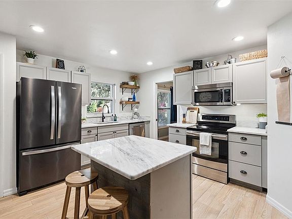 Dedicated coffee stationGranite countertopsLovely spacious remodeled kitchenOversized garageEstablished tree canopiesConvenient pool bath accessChalkboard walls
