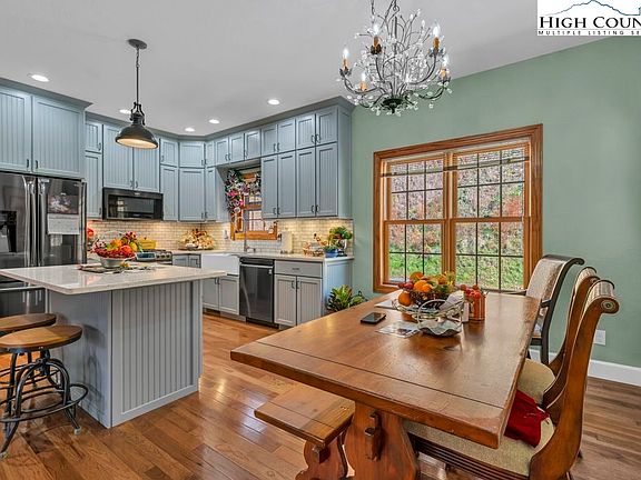 Who says you can’t have it all? At 625 Heaton Creek Road, you can! This exceptional lodge-style mountain estate, set on nearly 15 acres, overlooks Heaton Creek with mountains in the distance and offers the very best of indoor and outdoor mountain living. The main level of the home features a spacious primary suite and an open-concept living area highlighted by a stunning stone floor-to-ceiling propane fireplace. The great room flows seamlessly into the dining area and large kitchen with an eat-in island. A well-appointed butler’s pantry with a sink adds convenience and functionality. Just off the spacious laundry room you’ll find a two-car garage. Alternatively, exit the laundry room to the covered porch and carport out back that connects to the circular driveway. From the great room, step onto the large screened-in deck with an inviting wood-burning fireplace. Additional decking extends from each side—with both covered and open options and a ramp for accessibility. The upper level of the home offers a generous open loft overlooking the great room fireplace, ideal for additional sleeping space, a family lounge, or a home office. The craftsmanship of this home shines throughout with attention to detail and carpentry artistry that provides for optimization of space and natural light. On the lower level, enjoy a large family room with heated floors. This level also includes two bedrooms, a full bath, an office and mechanical room, and an additional oversized garage. Step outside onto the paved patio that, in keeping with the fashion of this home, offers you all options - both covered and open outdoor living. Relax while you take in the sights and sounds of Heaton Creek just across the road. The surrounding land is open and sunny near the house, transitioning into a wooded backdrop creating that peaceful, private mountain life you have been longing for. This beautifully designed home and its extensive outdoor living spaces make it an ideal primary residence or a luxurious vacation retreat. The home is equipped with a dual-fuel HVAC system for comfortable year-round living and a whole house generator. The property also includes a detached, well-insulated three-car garage of over 2000 sq ft complete with a vehicle lift and an interior RV hookup. Store all the adventure equipment you could want for use on both your own estate and at nearby attractions like Watauga Lake. Although the home was built in 2018, the meticulous maintenance of this home will leave you thinking it is brand new. This is a property that has everything you could need and want!