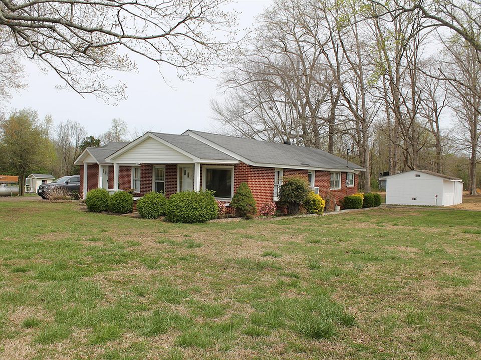 Cute cottage with a beautiful setting. Mature trees with 1.6 acres according to tax records. Home has gas heat and window air, Laminate floors throughout. Part of home was built on a slab.