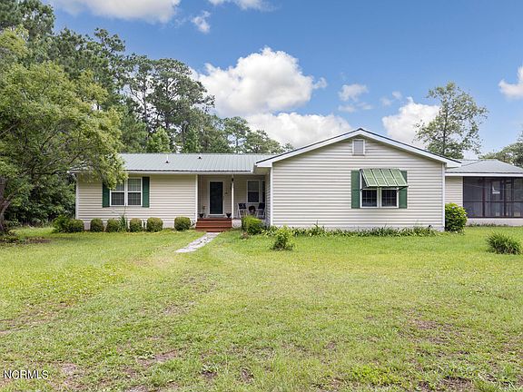 Experience country living on this beautiful approx. 3.99 acres of land, with no HOA and no city taxes! Priced BELOW FAIR MARKET VALUE after recent appraisal, this charming home features 2 bedrooms, along with 2 ADDITIONAL rooms, that can be used as another bedroom and bonus room/office, and a dedicated laundry room/mudroom with cabinetry and utility sink. Walk inside and enjoy the spacious living room! The kitchen has stainless steel appliances, a water filtration system, an island and pantry. The layout features two bedrooms on one side of the home, with the primary bedroom on the other, ensuring privacy and comfort. The primary bedroom includes large walk-in his and her's closets! Relax on the screened-in porch and enjoy the peaceful tranquility watching the deer and wildlife pass by. Outside you have a ''workshop'' with overhang roof to store mowers and lawn equipment. Entertain and welcome your friends and family to their own detached Guest House (ADU/in-law suite) featuring 1 bedroom, 1 full bathroom and storage; or use as a Man Cave or a room for crafting or projects. Whatever you imagine the space for- ideas are endless! Recent upgrades include a durable metal roof installed in 2017, tankless water heater, water filtration system, updated windows and blinds. Sellers are offering $5,000 for a buyer to use as they choose/or towards their closing costs and a 1-Year Home Warranty, on top of it all! The best part about this location is the close proximity to the gorgeous eastern Carolina beaches, all shopping/dining, and the military bases nearby. Don't miss out on the charming outdoors-y life that you've been looking for! Contact a realtor today for more information and to schedule your showing.
