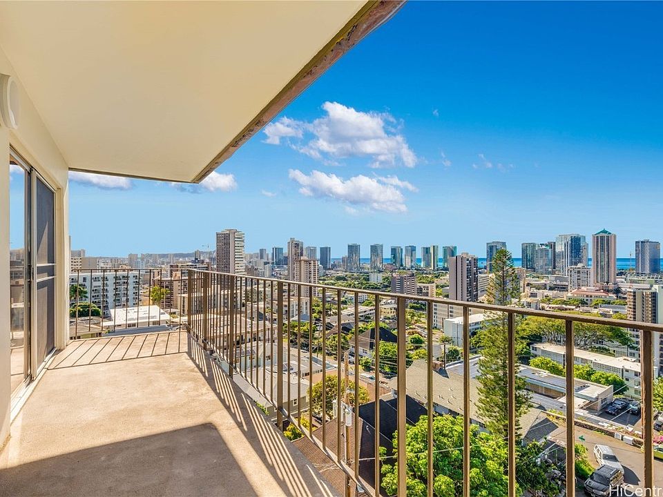 Rarely available 2 bedroom & 1 covered parking. Manageable maintenance fee. This unit is on top of the stack, there are no units above it. Fantastic city views of downtown Honolulu, Kakaako, Waikiki, ocean, blue skies, clouds, city lights & more. Additional views of Punchbowl, the Koolau mountains & Diamond Head. Enjoy fresh paint, new luxury vinyl planking, light fixtures & drapes. Use 2nd bedroom as an extension of the living room, an office or a den. You will love cooking in the well laid out kitchen, it even has its own window to enjoy the views. Appoint the large lanai with a dining table & start or end your day mesmerized by the panorama. Why settle for less, set up a private showing now because this one won’t last.