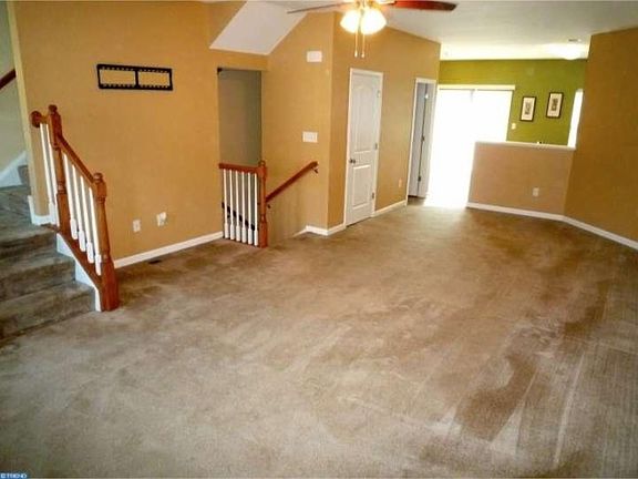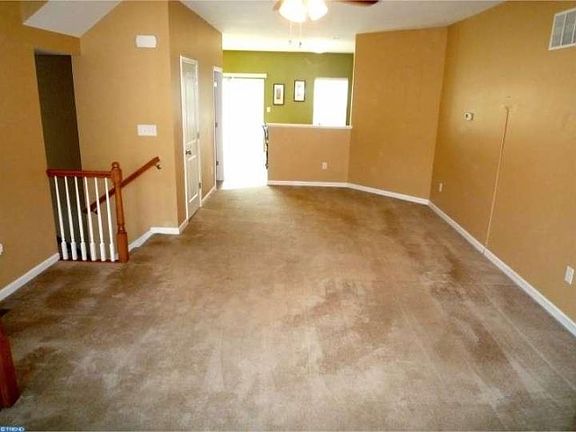 WOW! This beautiful stone-front TOWN HOME w/ attractive Carriage-style garage door & 6ft stone privacy wall is like new construction without the wait! Only 3 yrs young,this lovely & spacious home,situated at the back of the community,is ready for its new owner! 2-sty foyer entry w/ vinyl flooring & neutral decor. Butterfly-stair case to first landing shares access to the lower level Family Rm. Up a few more steps to the main level at the large Living Room featuring 9ft ceilings,neutral decor,deep coat closet,great natural light from the 2 big windows & small balcony view of the Foyer window as well. Depending on your style & preference,this huge rm can also be split up to provide a more formal dining space just before the Kitchen at the half wall. There is a convenient Powder Rm to the left featuring vinyl fl,pedestal sink & commode. The great eat-in Kitchen is open & bright featuring a large area for table-seating,42' cabinets,pantry cabinet,recessed lighting,vinyl fls,center island w/ addl cabinet storage,loads of counter space,sliders out to the brand new maintenance-free Trex deck overlooking the back yard w/ lots of privacy! Upstairs the Master Br offers plenty of space,walk-in closet w/ a window for great natural light & a full master bath featuring tile fls,double sink vanity,shower/tub surround,all neutral decor & nickle-finish lighting. Down the Hall you will find a good sized linen closet,another full bath featuring tile fls,vanity sink & full tub/shower surround. There is also a double closet featuring 2nd fl laundry w/ nearly new front loading washer & dryer included & convenient storage shelving! Both additional bedrooms are ample sized and neutral. The one bedroom has a walk-in closet & the other has a big double closet,so both have great storage capacity! Back downstairs to the lower level Family Room you will appreciate the additional living space & natural light this room has to offer as well as a big double closet,2 windows & rear door to the cozy paver patio under the deck! There is also a 7x6 finished storage room featuring rough-in plumbing for a future Powder Room and convenient inside access from the main floor 2-car garage! All carpets throughout the home have been professionally cleaned by Chem-Dry! All interior doors are lovely white, raised panel doors w/ nickel finishes. Put this great home on your next tour! Great location just behind the University Plaza shopping center & close to major Rts 273 & I-95! See it! Love it! Buy it!