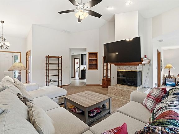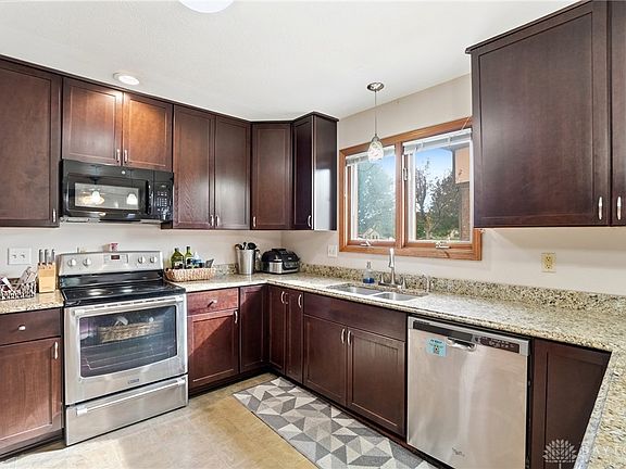 Beautifully maintained brick ranch tucked away on a quiet cul-de-sac in one of the area’s most desirable neighborhoods. Designed for comfort and everyday living, this home offers an ideal balance of open gathering spaces, private retreats, and inviting outdoor areas perfect for relaxing or entertaining. Inside, you’ll find a bright and welcoming floor plan highlighted by vaulted ceilings, large windows, neutral finishes, three sided gas fireplace and easy flow between rooms. The spacious living room offers abundant natural light and connects seamlessly to the dining area and kitchen, creating a comfortable setting for family life and casual entertaining. The kitchen features warm cabinetry, granite countertops, quality appliances, and generous counter space, along with a breakfast bar that’s perfect for quick meals or conversation while cooking. A cozy family room at the rear of the home opens directly to the covered patio, extending the living space outdoors. The primary suite provides a peaceful retreat with an en-suite bath and ample closet storage. Two additional bedrooms with large closets are well-proportioned and versatile—ideal for guests, a home office, or creative space. Both bathrooms have been tastefully updated with modern fixtures and finishes. Additional highlights include a dedicated laundry room, extra storage options, and an attached two-car garage with built-in shelving. The fenced backyard offers a private oasis featuring a covered patio, a charming pergola, and plenty of lawn space for gardening, play, or pets. Situated just minutes from Tipp City schools, parks, restaurants, and the historic downtown district, this property blends small-town charm with modern convenience. This home delivers the perfect combination of comfort, style, and function—ready for you to move in and make it your own. Items that convey are the electric range, microwave, refrigerator, dishwasher, washer & dryer, pergola and the TV over Fireplace.
