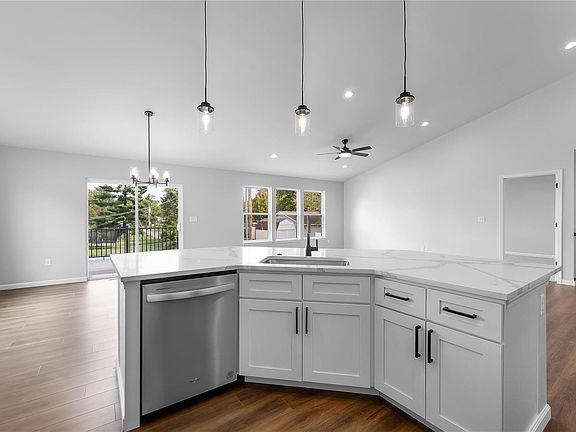 Newly completed, Move-in ready!Beautiful Montclair style ranch home with many high quality upgrades! Open floor plan with vaulted ceilings, 5Ft windows and luxury vinyl plank flooring throughout main living areas. Great room features 3 large windows for an abundance of natural light. Kitchen offers large island with flush counter tops for breakfast bar plus custom cabinets, stainless steel appliances and a large walk in pantry.10x12 Composite rear deck w/aluminum railing and sliding glass doors off dining area.Master suite w/large window, coffered ceilings, walk in closet, private master bath features tile surround shower and double quartz top vanity. Tile surround tub and shower in main bath with soft close toilets.Ceiling fan in great room and prewired for ceiling fans in bedrooms. Open railing to lower level.Main floor laundry/mudroom has access to garage, lower level includes bath rough-in and egress window.White Craftsman 3 panel doors and Led lighting. Builder warranty included!