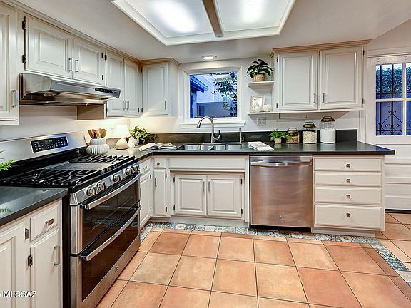 Tucked behind a gated courtyard, this burnt adobe residence in historic Sam Hughes neighborhood beautifully blends charm w modern updates. Ceramic tile floors connect each living space, leading to an upgraded kitchen w quartz counters & SS appliances. Greatroom, highlighted by exposed brick,adds warmth & texture. Double doors lead to spacious backyard perfect for entertaining under the desert sky. Beyond the yard, discover guestquarters, ideal for extended family,/ short-term rental. Three-car garage offers space for projects, a studio or expansion of the guestquarters. Primary bdrm has soft natural light, dual closets, & access to a private patio With flexible spaces & desert character, this home is perfectly suited for the vibrant Tucson Lifestyle. THIS IS THE ONE! Welcome Home